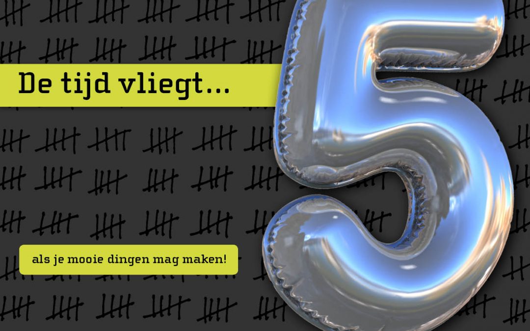 Natuurlijk Van Harte Gefeliciteerd met jullie eerste 5 jaar.! Wat is,daarin ontzettend veel gebeurt en hebben jullie gedaan ! Wij mochten er voor een groot deel heel gezellig en fijn van meegenieten en volgen van alle werkzaamheden en veranderingen ! SUPER ! En dan als cadeau( tje) een geweldig “speeltje” voor je , dat zal een heel stuk schelen voor je rug ! Goede aankoop , daar heb je wat aan.
