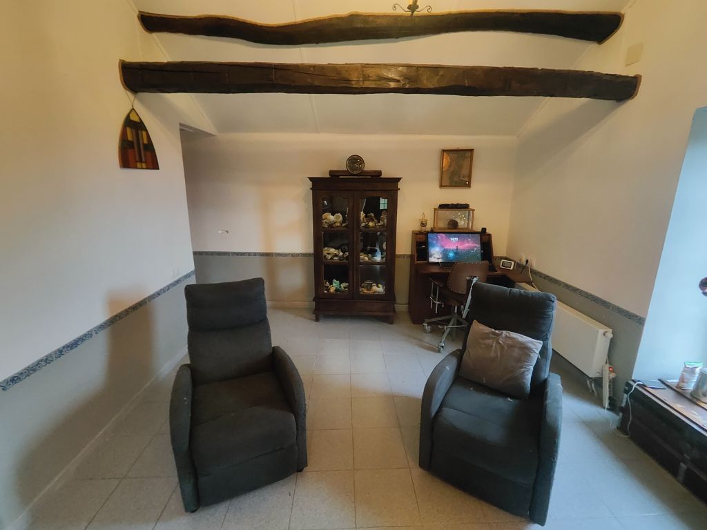 Omdat we eigenlijk altijd in de keuken eten en dus de eetkamer niet als eetkamer gebruiken leek het ons beter, bij gebrek aan een woonkamer, de eetkamer, meubel technisch, te verbouwen tot woonkamer. Daarvoor moesten wat meubels verdwijnen, die nu veilig ingepakt op een pallet staan in de stal. Daar staan ze de komende jaren goed, het is er nagenoeg altijd dezelfde temperatuur en het is er niet vochtig.