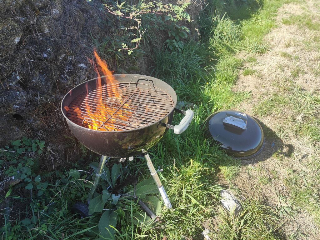 We hebben dus nog gewoon regelmatig in de tuin zitten BBQ-en. Het hout wat bedoeld is om het fornuis in de keuken mee aan te maken, gebruiken we nu om de BBQ mee aan te maken en het vlees mee klaar te maken. Dat is dus leuk, lekker en fijn.